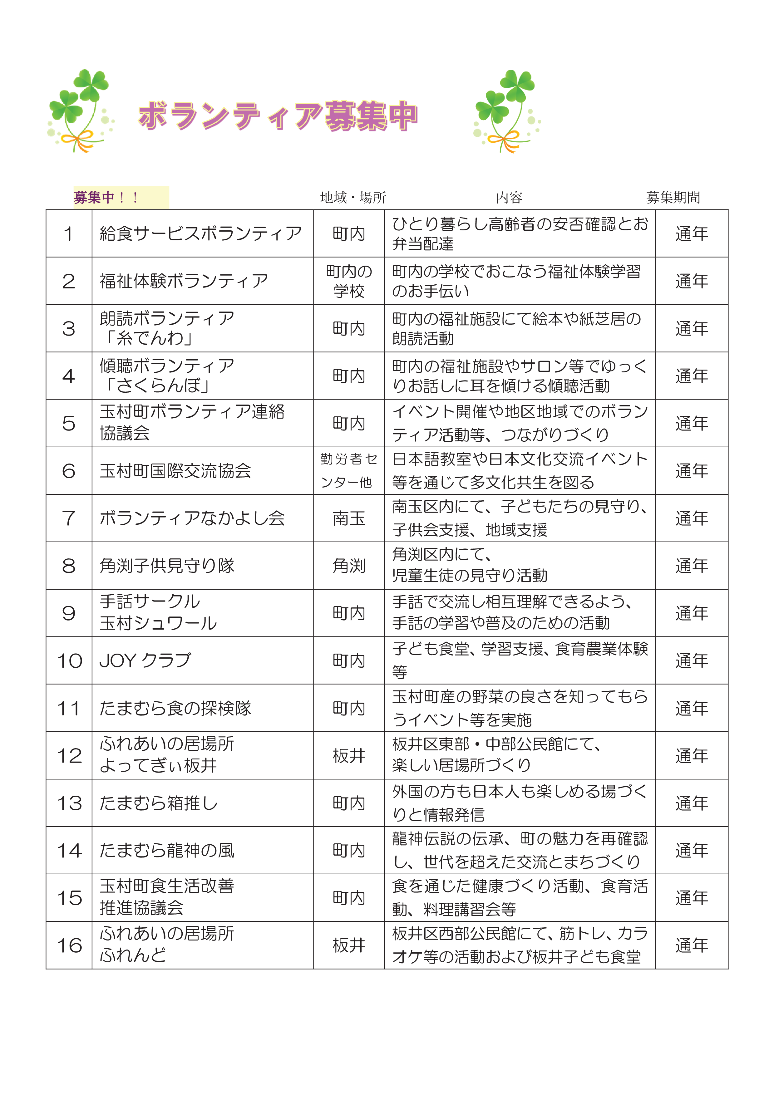 ボランティアの募集